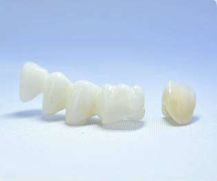 金属を使用しないで、セラミックだけで作られた人工のかぶせもののことです。自然な歯の色と輝きがあり、光を透過するので、最も天然の歯に近い人工歯といわれています。